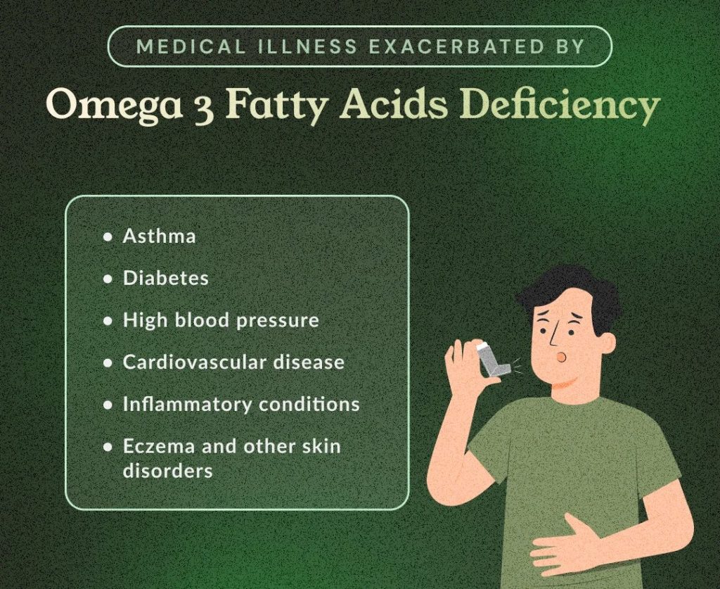 Kajian meta-analisis dalam Nutrients (2024) yang melibatkan lebih 15,000 pesakit mendapati bahawa pengambilan asid lemak omega-3 yang mencukupi dikaitkan dengan pengurangan kekerapan serangan asma, kerana sifat anti-keradangannya yang terbukti secara saintifik.