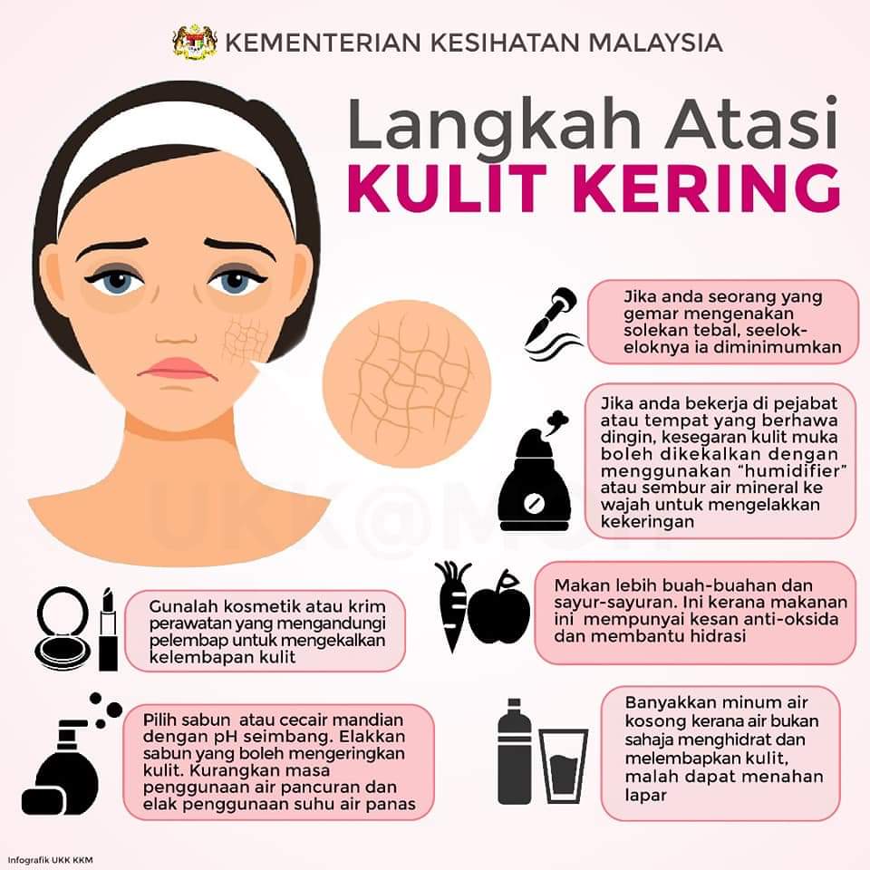 - Gaya Hidup & Pengambilan Cecair: Tidak minum air yang mencukupi (kurang daripada 2 liter atau 8 gelas sehari) menyebabkan organ tubuh, termasuk kulit (organ terbesar), tidak mendapat hidrasi yang optimum.